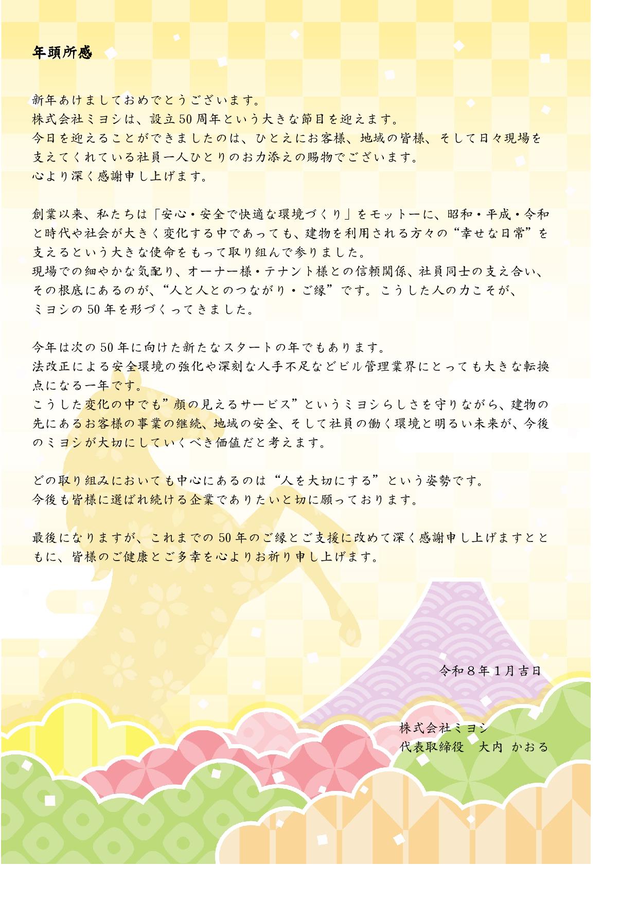 あけましておめでとうございます 2026.01.05 お知らせ 旧年中は格別のお引き立てを賜り厚く御礼申し上げます。 本年もより一層のご愛顧の程、宜しくお願い申し上げます。 三好商事株式会社 また、関連会社株式会社ミヨシはおかげさまで50周年となります。 あけましておめでとうございます Tweet Share Hatena Pocket RSS feedly Pin it この記事のタイトルとURLをコピーする